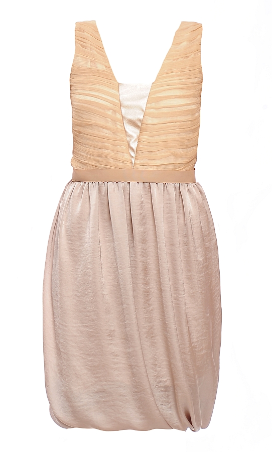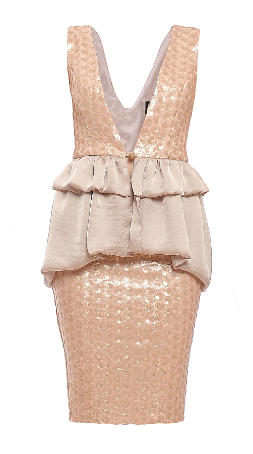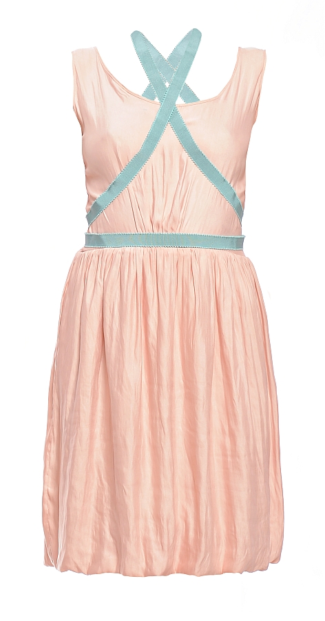 Nuantele pastelate de rose, nude si alb prafuit predomina cu accente de fuchsia, corai si turquoise iar materialele utilizate in colectie sunt dantele delicate, tulle, vascoze fine, matase, voaluri cu imprimeuri sau broderii fine de paiete.
